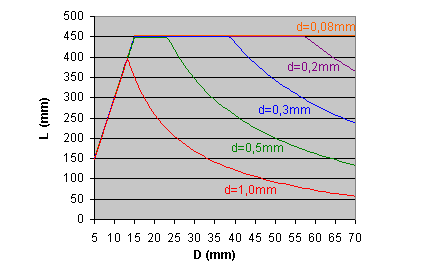 Die Hülsenlänge L ist in Abhängigkeit von Durchmesser D und Wandstärke d aufgetragen.