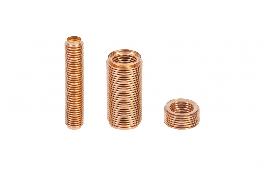 Mera Bellows fabrica tubos y casquillos metálicos de pared delgada con una longitud de hasta 450 mm en bronce, latón, acero inoxidable, monel y aleaciones de cobre al berilio. Los tubos de precisión y casquillos embutidos de cobre o aleaciones Ni-Cr-Mo no forman parte de la oferta de productos.