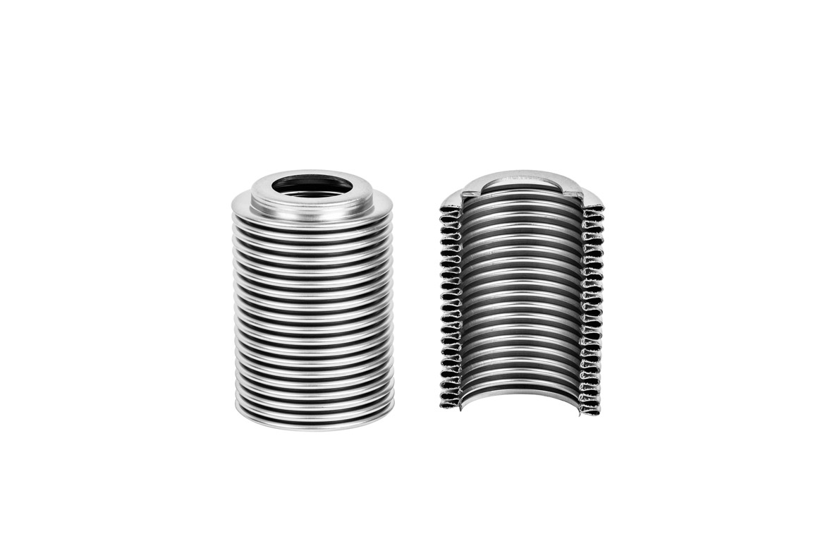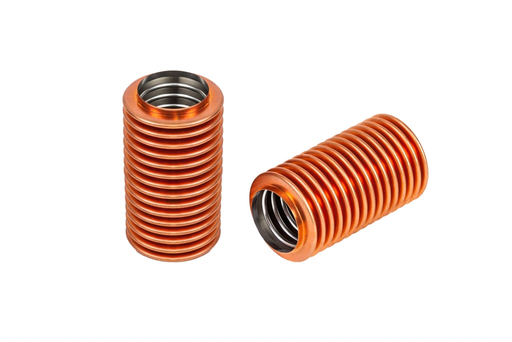 Mera Bellows tiene una larga tradición en la producción de fuelles metálicos de doble pared. Para fabricar estas especialidades, se insertan dos casquillos uno dentro del otro antes de la conformación de las ondulaciones del fuelle. Para ello debe prestarse atención a la máxima precisión de los diámetros de los casquillos y a la meticulosa limpieza de las superficies de los mismos.
