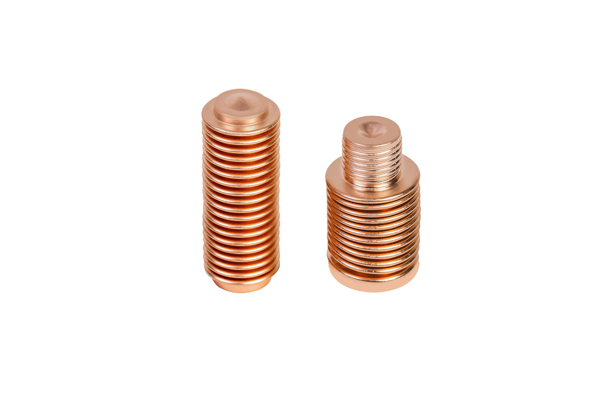 Los casquillos de precisión de Mera Bellows sin costura son embutidos con la máxima precisión y tienen por consiguiente una base o extremo cerrado que puede adquirir prácticamente cualquier forma. Los grosores de pared comienzan a partir de los 0,064 mm. En caso de que se necesiten tubos de pared delgada que sean abiertos, el extremo cerrado por supuesto también puede cortarse. En función del proceso de producción, en el diámetro pueden lograrse tolerancias de entre 0,1 mm y 0,4 mm y en el grosor de pared de entre 0,004 y 0,015 mm. Los casquillos y los tubitos metálicos embutidos sin costura tienen excelentes propiedades de mecanizado y son adecuados para una deformación plástica adicional.